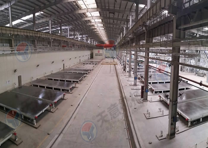 該生產(chǎn)線采用移動(dòng)模臺(tái)加中央擺渡車的形式來(lái)生產(chǎn)構(gòu)件,比起固定模臺(tái)來(lái)更加靈活,效率更高,澆筑振搗完的的構(gòu)件由中央擺渡車將模臺(tái)送入養(yǎng)護(hù)窯養(yǎng)護(hù),布局合理,工藝先進(jìn),可同時(shí)生產(chǎn)多種混凝土預(yù)制構(gòu)件。