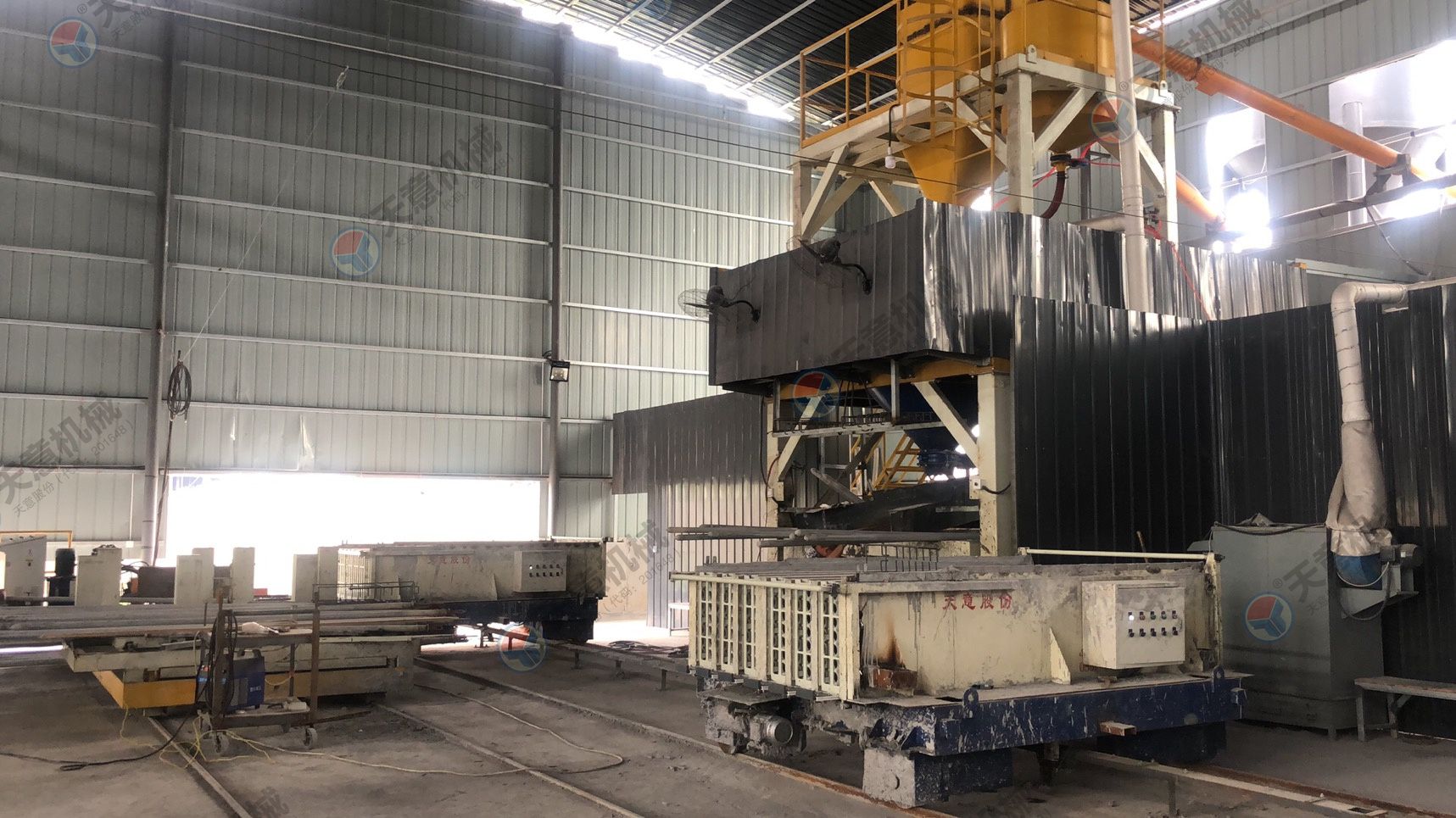 9、生產(chǎn)線設(shè)有封閉式自動噴灑脫模劑裝置(減少了人工現(xiàn)場噴灑作業(yè)及脫模劑的浪費,生產(chǎn)觀場更加節(jié)約環(huán)保)。