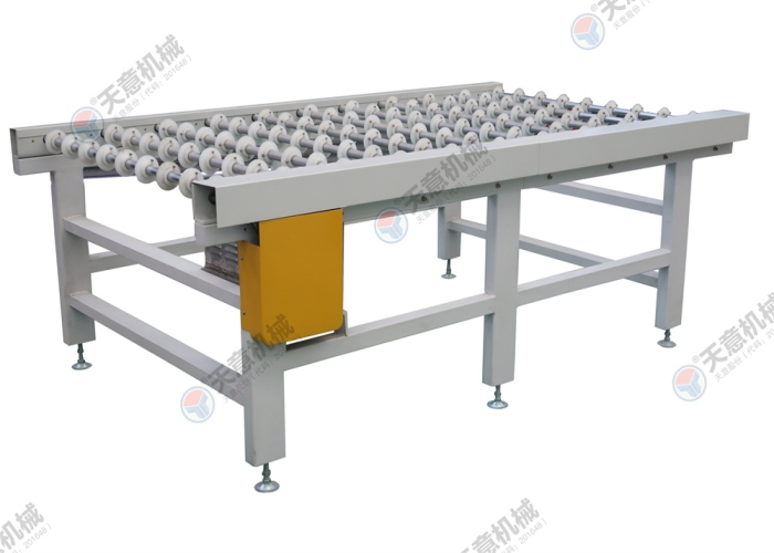 適用于背涂膠后硅酸鈣板、水泥纖維板、玻鎂板等進(jìn)行流水作業(yè)時的工件對中輸送。采用尼龍輪輸送,既能減少與膠面的接觸面積還能保證板材的平穩(wěn)輸送。具有將板材對中的作用,提高了生產(chǎn)線的工作效率。